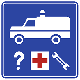 Se usa para indicar la presencia de un sitio en el que se proporciona asistencia médica, mecánica e información turística.