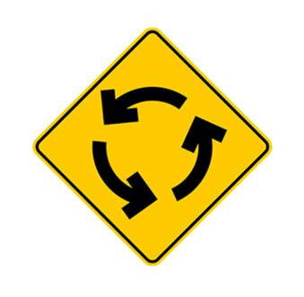Se emplea para indicar una intersección a nivel de dos o más vialidades, la cual tiene una isleta central de forma redondeada para circulación continua.