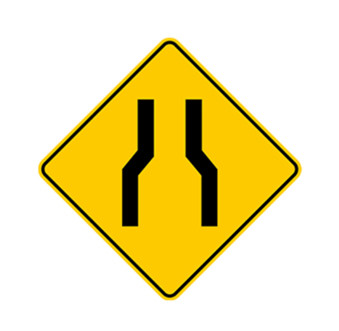 Se usa para indicar una reducción simétrica en la anchura de la vialidad, ya sea disminuyendo el número de carriles o las dimensiones de la sección transversal.