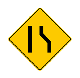 Se aplica para indicar una reducción asimétrica de la anchura de la vialidad, ya sea disminuyendo el número de carriles o las dimensiones de la sección transversal.