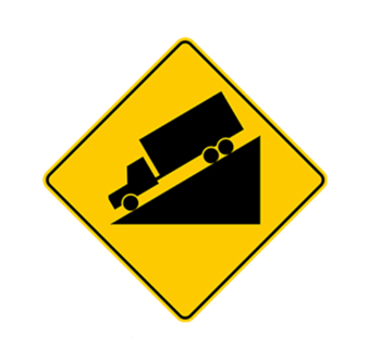 Se usa para indicar la presencia de un tramo de la vialidad con una pendiente descendente continua en un tramo considerable, en la cual se recomienda reducir la velocidad, de preferencia con motor.