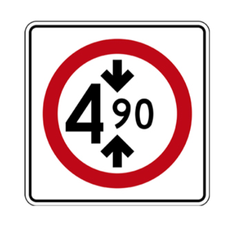 Se emplea para indicar que la altura libre de un paso inferior u otra estructura es menor de 5.00 m y se coloca en dicha estructura. La dimensión se indica en metros con aproximación al decímetro inferior.