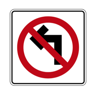 Se emplea en aquellos sitios donde se prohíba la vuelta a la izquierda por tratarse de una circulación de sentido contrario o, en casos específicos, para no interferir con otros movimientos importantes, inclusive el de peatones. Puede llevar un tablero adicional en donde se indique para que tipo de vehículo aplica la restricción.