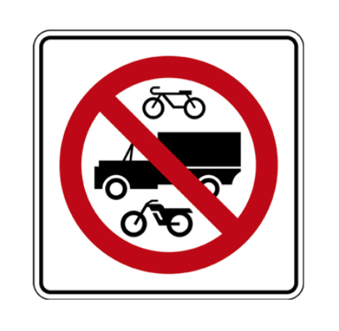 Se usa para indicar que está prohibido el tránsito de bicicletas, vehículos de carga y motocicletas en determinado tramo de la carretera o vialidad urbana.