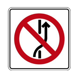 Se coloca en vialidades de un solo sentido de circulación cuyos carriles se encuentren separados por un camellón u otro elemento divisorio, donde se prohíba cambiar del carril o carriles del cuerpo izquierdo al carril o carriles del cuerpo derecho.